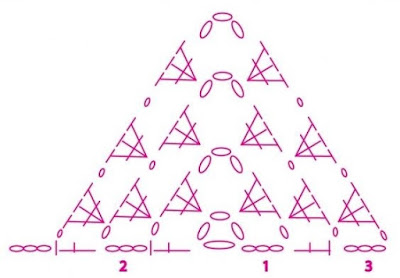 Het patroon is denk ik het meest simpele patroon van een omslagdoek. De tekening laat duidelijk zien hoe je moet haken om deze sjaal te maken. Doordat het garen gemêleerd is, geeft dit een mooi effect! Het randje haakte ik d.m.v. de schelpsteek en daarna met bruin op de schelpjes rand vasten. Als laatste detail bevestigde ik een grote kraal aan de punt. En weet je: ik vind hem zelf zo leuk geworden!